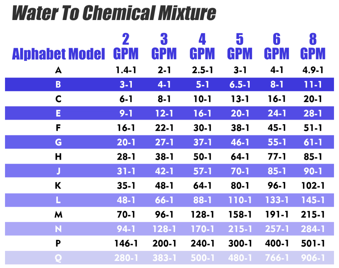 - 14 Proportioners for controlling the perfect chemical to water dilution ratio