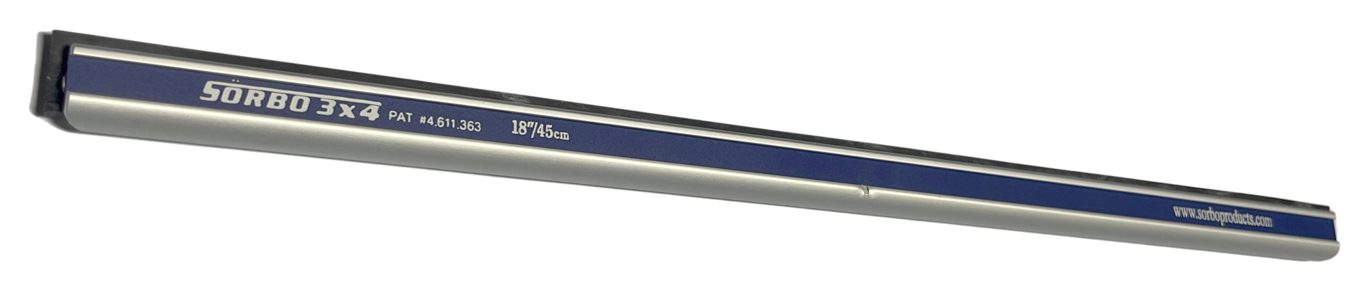 The Black Mamba 3X4 Adjustable wide-body Squeegee with 90 degree angle cut ends was the very first revolutionary wide-body squeegee.  The adjustment slots or settings in the Sörbo 3X4 Adjustable squeegee channel allow you to reposition the rubber/blade to the desired firmness.